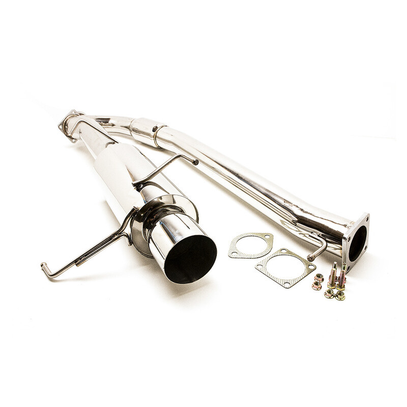 Le terme "catback" désigne les composants de la ligne d'échappement situés après le catalyseur. Ce catback pour R33 fabriqué par DriftShop se compose d'un tube intermédiaire de diamètre 3" (76 mm), et d'un silencieux arrière (sortie en 4.5").