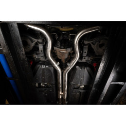 Cette ligne d'échappement "catback" Cobra Sport pour Ford Mustang GT 5.0L V8 conçue en acier inoxydable T304 se monte en sortie de catalyseur.