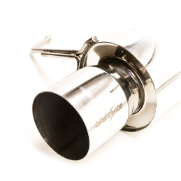 Le terme "catback" désigne les composants de la ligne d'échappement situés après le catalyseur. Ce catback pour R33 fabriqué par DriftShop se compose d'un tube intermédiaire de diamètre 3" (76 mm), et d'un silencieux arrière (sortie en 4.5").
