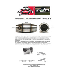 Filtre à particules universel haut débit Ø126 pour application racing/compétition. Recommandé pour les moteurs jusqu'à 4 litres ou environ 400 ch. Deux filtres peuvent être montés en parallèle pour une cylindrée ou une puissance plus importantes.